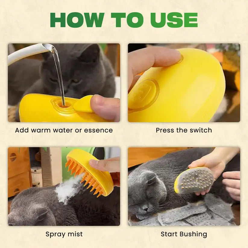PurrfectSteam™ uses gentle steam technology to soften, detangle, and remove loose fur effortlessly. No harsh pulling. No mess. Just a happier, shinier pet.